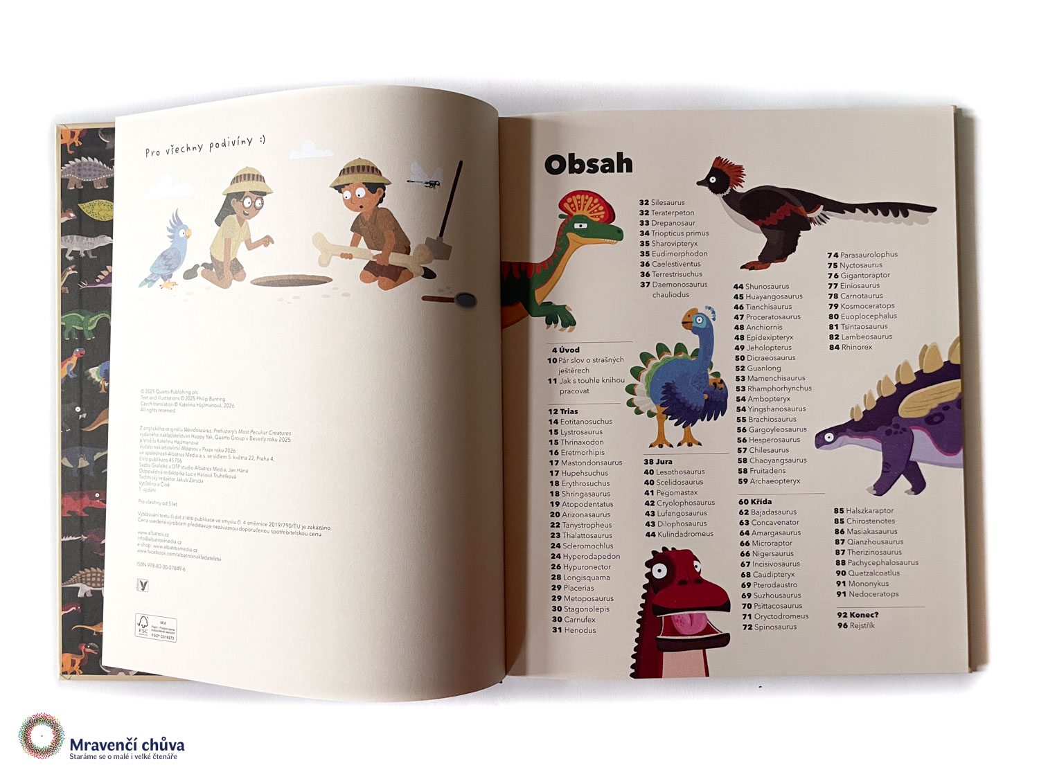 Zábavná a naučná encyklopedie pravěkých tvorů, která čtenáře a čtenářky zve k objevování nejpozoruhodnějších dinosaurů a jiných pravěkých plazů, a to nejen těch známých, ale i těch skutečně podivných. Autorem knihy je britsko-australský spisovatel a ilustrátor Philip Bunting, který ve své tvorbě propojuje humor a vzdělávání. Kniha je určena spíše mladším čtenářkám a čtenářům, ale díky obsáhlým informacím i mnoha příkladům tvorů zaujme jistě i starší děti. Jednotlivé druhy pravěkých tvorů jsou řazeny do tří období podle toho, kdy se v přírodě vyskytovaly – do období triasu, jury nebo křídy. U každého z druhů najdeme vtipnou ilustraci, základní informace i neobvyklé zajímavosti. Tato kniha je další z řady oblíbených autorových publikací, ve kterých dětem přibližuje zajímavosti ze světa přírody.