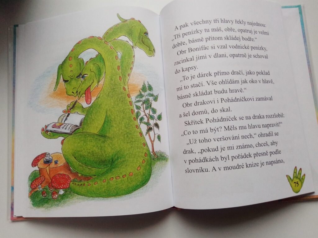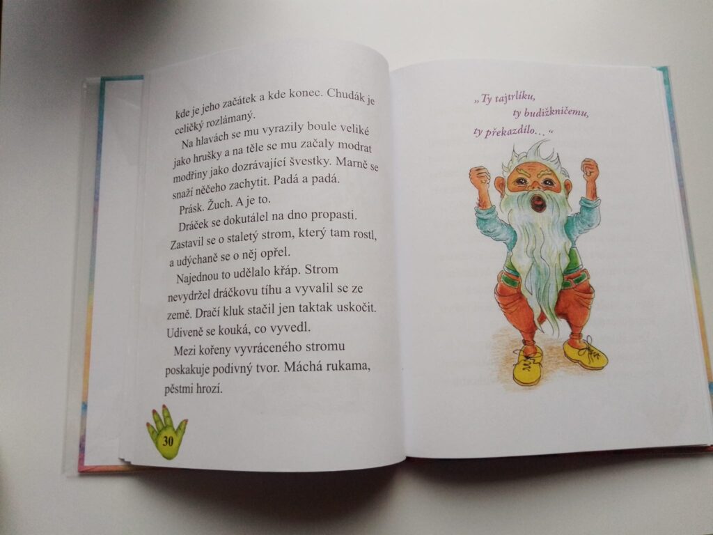 Verunku (7 let) zaujal vtipný drak, líná ježibaba i velká písmena, díky kterým si mohla knížku Drak Natlučnos přečíst skoro celou sama