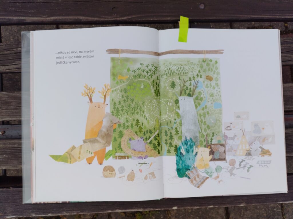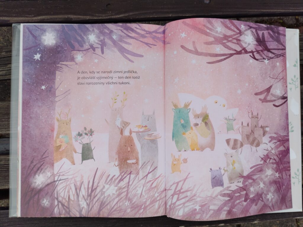 Kouzelný les, tukoni a narození zimní jedličky – Verunku (7 let) zaujala něžná knížka s velkými ilustracemi, kterou doporučuje malým čtenářům i nečtenářům