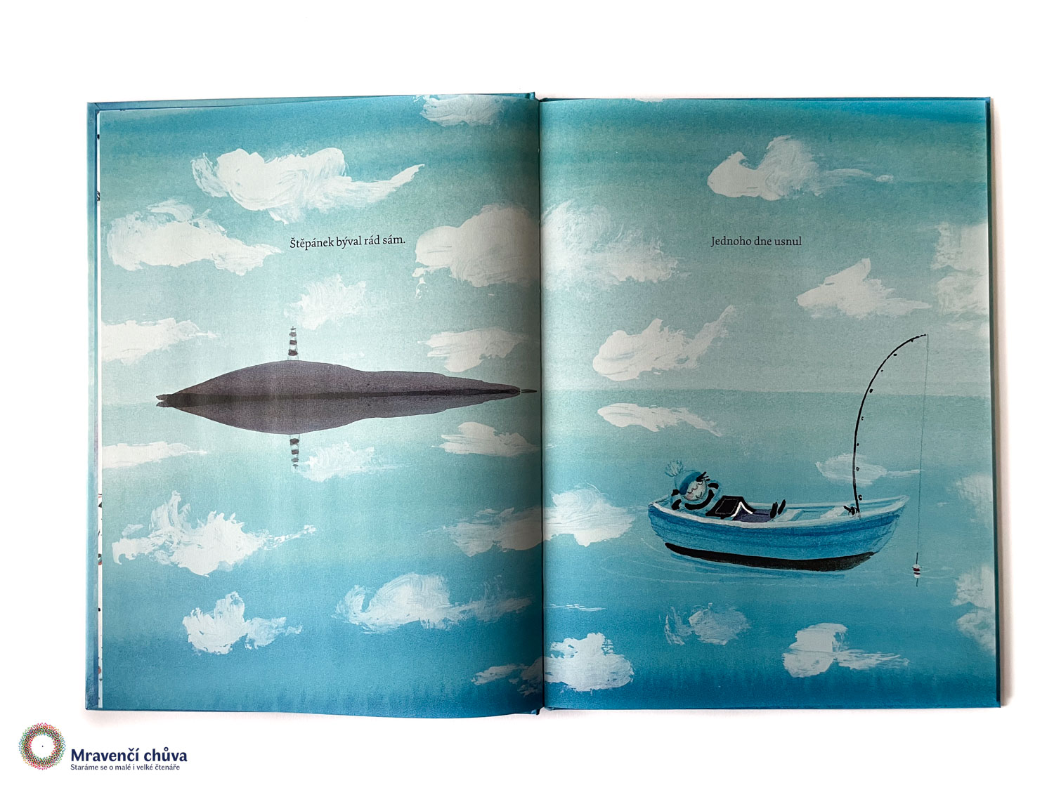 Velkoformátová obrázková kniha vypráví o Štěpánkovi, který je rád sám a žije na nezvyklém místě – a to do doby, než potká velrybu, která se stane jeho přítelkyní a s níž prožívá mnohá dobrodružství i blízkost. Postupně si uvědomí, že domov netvoří místo, ale ti, kdo nás obklopují. Ilustrace Linde Faas jsou vytvořené s omezenou barevností, soustředí se na modrou, béžovou, ale také fialovou a černou. Postava Štěpánka i papuchalků působí místy až groteskně, celkově si však kniha zachovává jemnou, klidnou atmosféru a ladění.