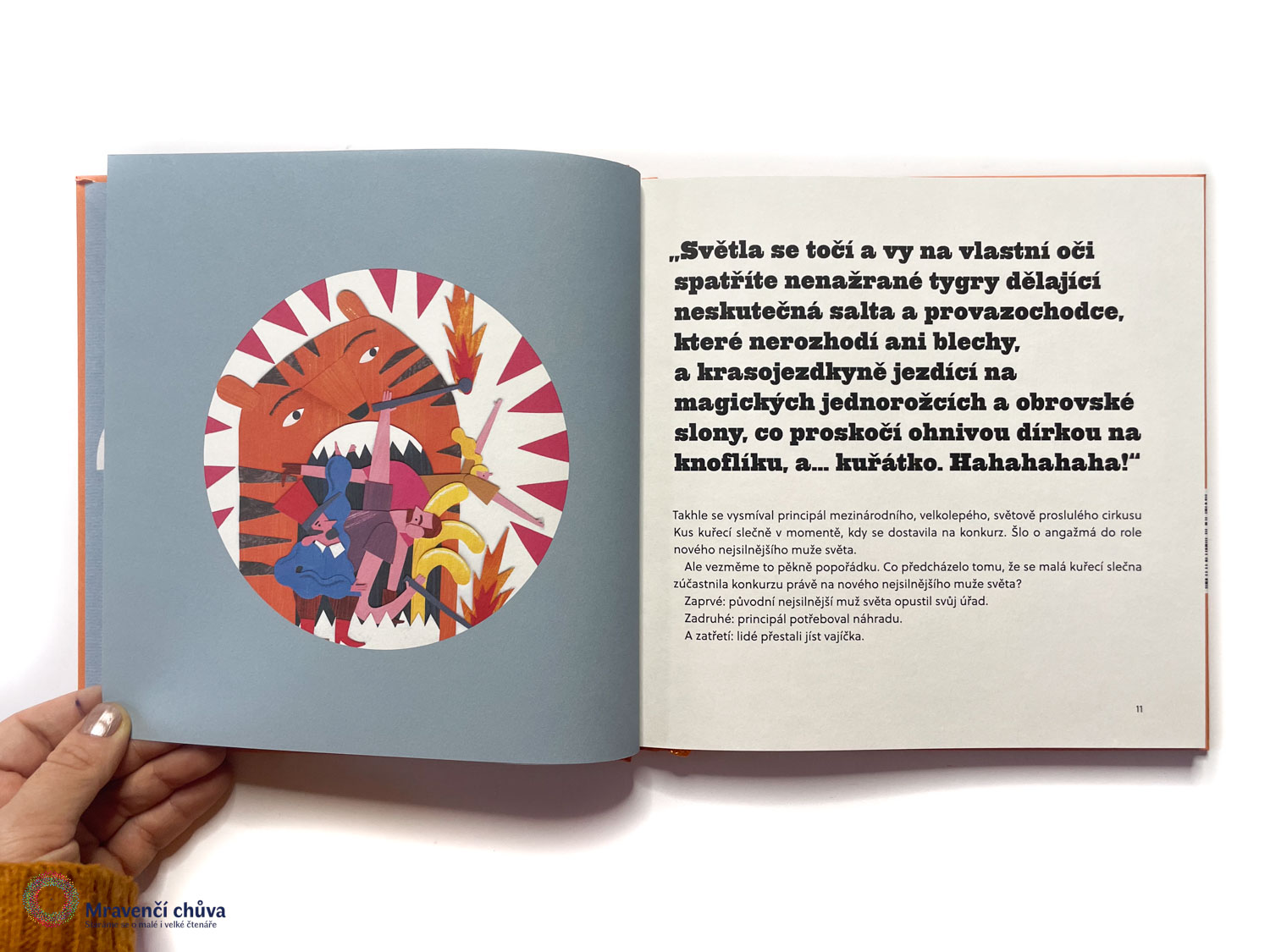 Osm pohádek plných veselých příhod, fantazijních představ a také s hrstkou poučení. V prvním příběhu se seznámíme s kuřecí slečnou, která se rozhodla zachránit svou rodinu tím, že se stane nejsilnějším kuřetem na světě. Při čtení druhého příběhu se dovíme, jak si kluk Buk přál získat knírek až tak moc, že mu knírek přerostl přes hlavu. Ale nebojte, pohádky vždycky dobře dopadnou! Ve třetím příběhu se seznámíme s reportáží Dorotky Dobrodružné, která byla na stopě záhadnému Psanci. Čtvrtý příběh vypráví o holčičce, která překonala svůj strach a vydala se mimo domov přímo do džungle. Příprava na vesmírnou olympiádu se odehraje v pátém příběhu a nakonec čeká na čtenáře a čtenářky pohádka jménem Konečná. V té se dívenka Sněženka vypraví úplně sama poprvé vlakem domů. Příběhy jsou plné fantazie, kterou svými jedinečnými kolážemi podněcuje také autorka ilustrací Marie Urbánková. Knihu doporučujeme pro společné rodinné i školní čtení s dětmi.