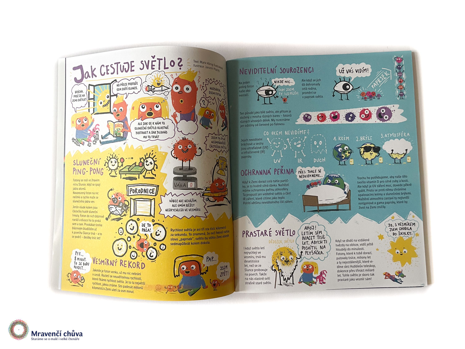 Pro čtyřicáté páté číslo oblíbeného časopisu Raketa si redakční tým vybral originální téma Světlo. Děti se tak mohou seznámit s tématem, jak cestuje světlo, zahrát si hru Světelná dráha, dozvědět se, co je tzv. svatyně světlušek, nebo si s návodem vyrobit stínové divadlo. V čísle najdeme také informace o měsíčním svitu a jeho vlivu na přírodu nebo jak se lidé učili využívat světlo a zachytávat ho v nejrůznějších zařízeních. Nechybí ani oblíbené pravidelné rubriky – od několika komiksů různých autorů a autorek až po hledání rozdílů, příběhy a recepty.