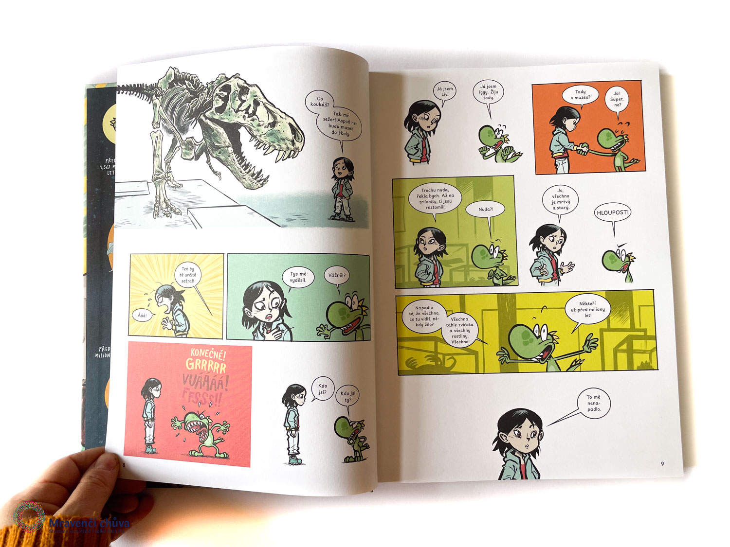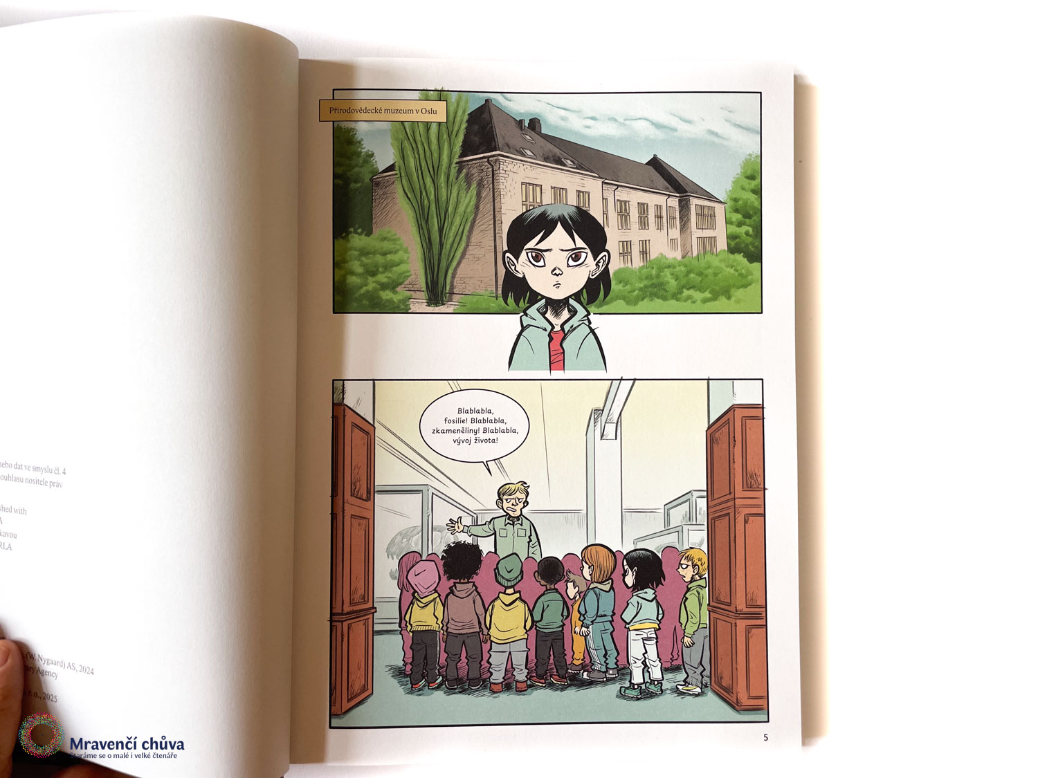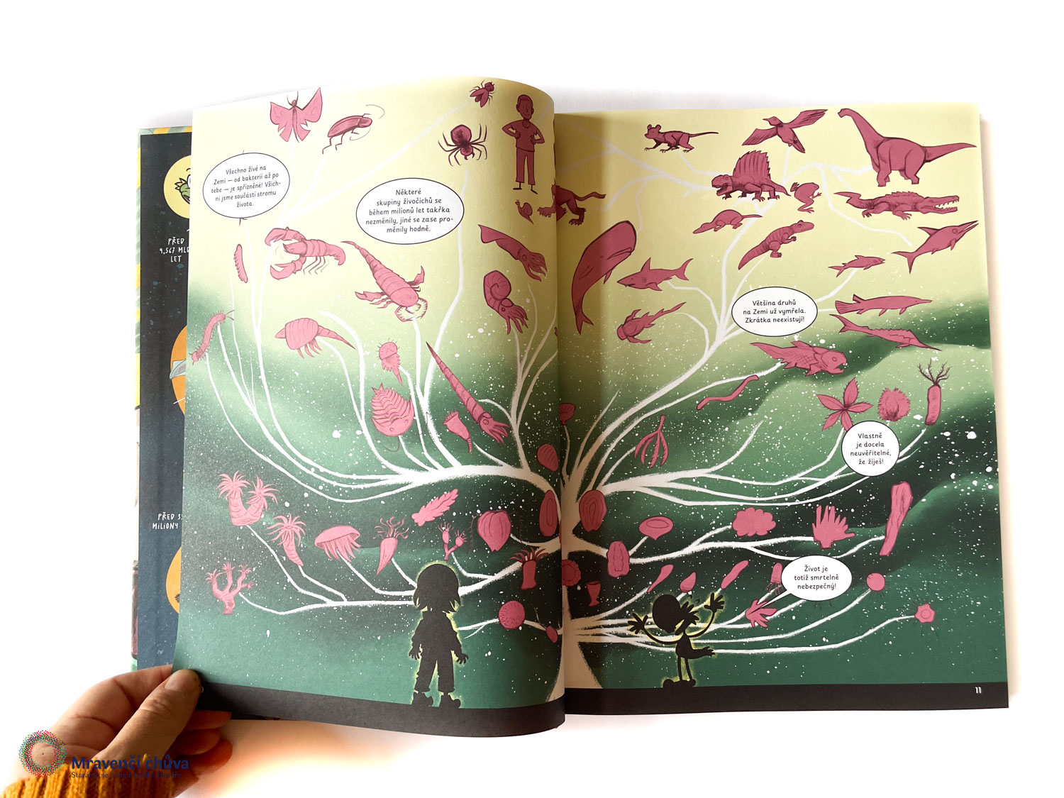 Obsáhlý komiks přibližuje vývoj života na Zemi od jeho počátků až po současnost. Příběh začíná školní návštěvou muzea, která se zprvu jeví jako další nudná exkurze plná dinosaurů a trilobitů. Hlavní hrdinka však potká nečekanou bytost, která ji vezme na strhující a místy i děsivý průlet historií planety. Společně chronologicky procházejí jednotlivými obdobími, setkávají se s T-rexy, diplodoky i obřími houbami a objevují souvislosti, které průvodce srozumitelně vysvětluje. Kniha je nabitá odbornými názvy i informacemi, přesto si zachovává čtivost a dokáže udržet zvídavost i při delším čtení. Autorem scénáře je norský geolog a spisovatel Reidar Müller, který se dlouhodobě věnuje historii Země a přírodním zajímavostem. Výraznou a dynamickou kresbu plnou pohybu vytvořil norský tvůrce Sigbjørn Lilleeng.
